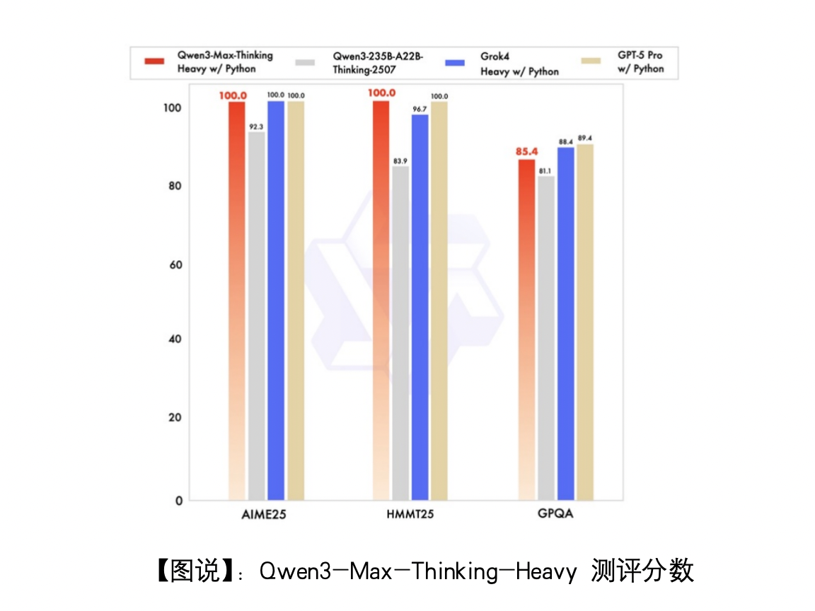 Qwen3-Max的推理增强版本Qwen3-Max-Thinking-Heavy也展现出非凡性能,结合工具调用和并行推理技术,其推理能力创下新高,尤其在聚焦数学推理的AIME 25和HMMT测试中,均达到突破性的满分100分,为国内首次。Qwen3-Max推理模型之所以能够取得优异成绩,原因在于大模型在解数学题时懂得调动工具,能够写代码做题,同时,增加测试时的计算资源,也让模型表现变得更好。