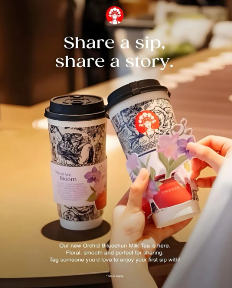 另一方面,霸王茶姬实现了东方茶在海外的市场新尝试。面对亚太市场普遍偏爱甜腻、加料的饮品习惯,以及旧有印象中将“中国茶”与昂贵、陈旧挂钩,霸王茶姬通过“东方故事,本土表达”的融合,打破了这一认知。