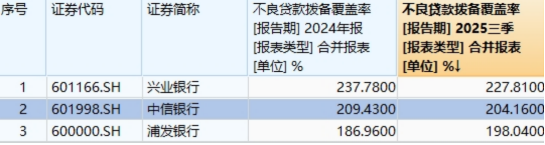 那么中信银行是如何做到增利不增收的?这既是中信银行管理上强化降本增效,同时战略上加大拨备反哺利润的力度。2024年末-2025年9月末,中信银行的不良贷款拨备覆盖率从209.43%降至204.16%,贷款拨备率从2.43%降至2.36%。未来通过调节拨备改善利润的空间趋小,中信银行的下一步经营战略拭目以待。