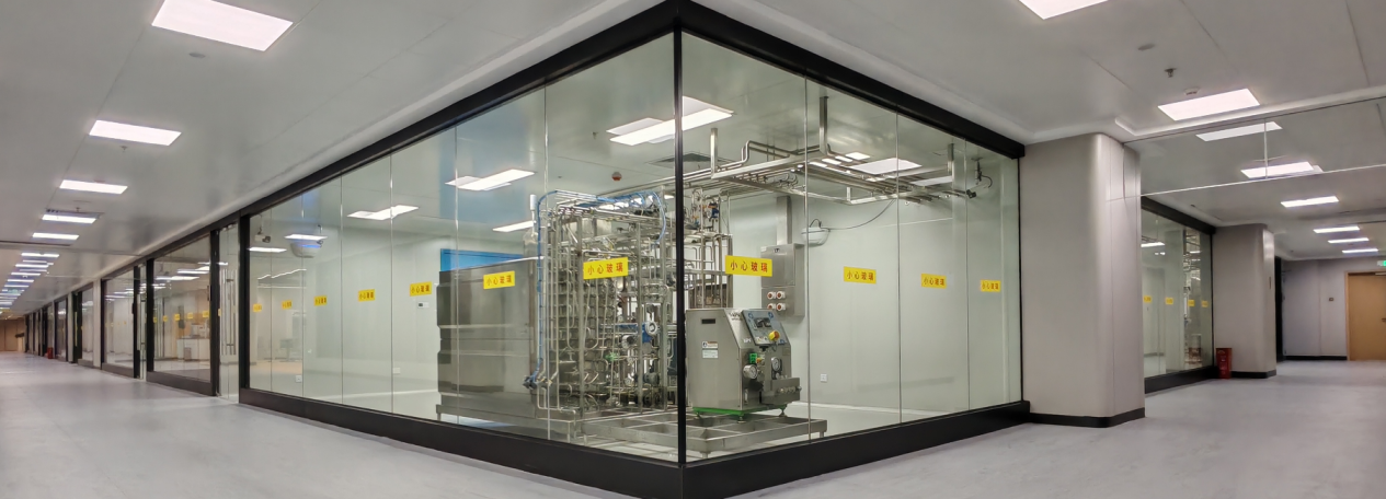 中试工厂作为承接实验基地的研发成果与小试样品的重要载体,配置了齐全的饮料加工模块和功能单元,具备较强的柔性生产能力和工艺能力,是目前国内可切换品类最多、最全的健康饮品中试产线,可精准服务于蛋白饮料、风味饮料、植物饮料等11个大类, 49个小类主流饮品的规模化生产。中试工厂搭建起了实验室技术到规模化量产的桥梁,真正打通了“研发-小试-中试-产业化”的完整闭环。