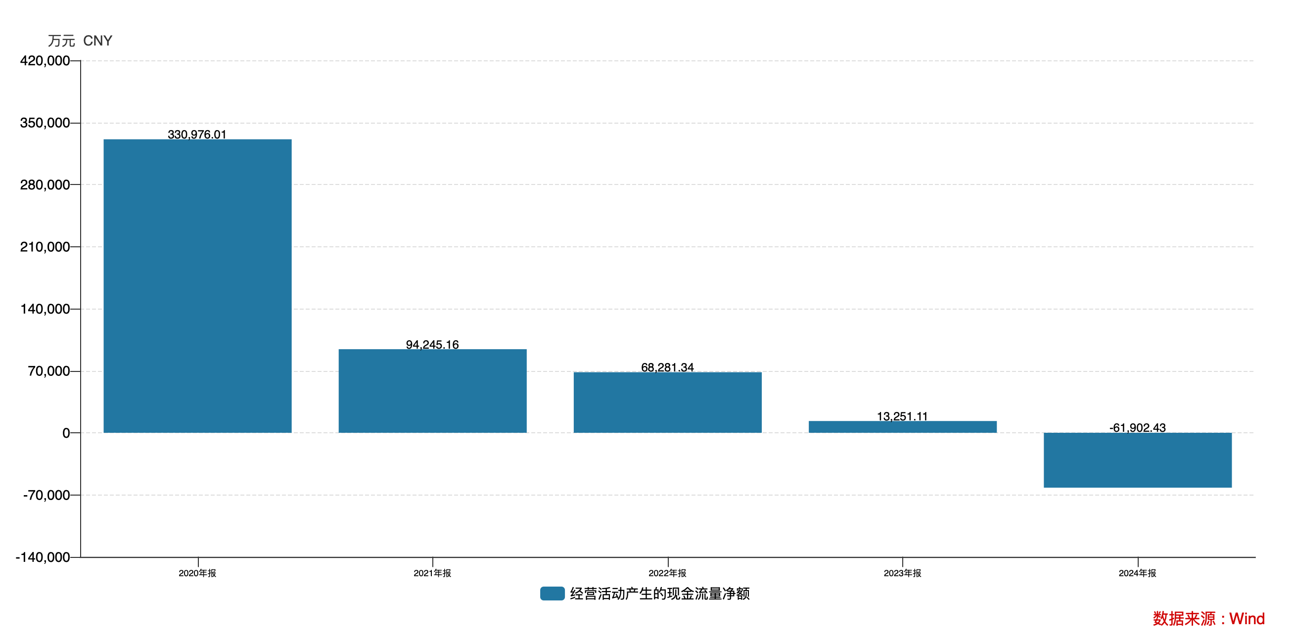 一个尖锐的对比摆在眼前,利润在飙升,现金却在“失血”。 自2020年达到33.1亿元的高点后,公司经营活动现金流净额便一路下滑,直至2024年转为净流出6.19亿元。今年前三季度虽艰难回正,但1.07亿元的规模与超10亿元的净利润严重背离。期末现金余额更比年初锐减近15亿元,降至43.8亿元。