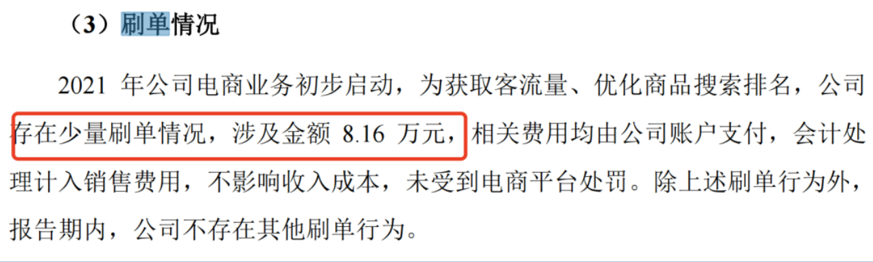 此外,2021年,百瑞吉电商业务初步启动,为获取客流量、优化商品搜索排名,公司存在刷单情况,涉及金额8.16万元。