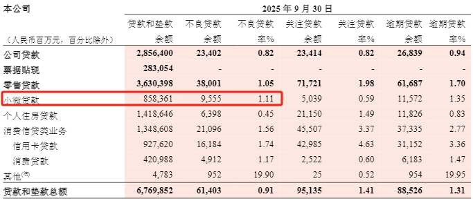 2025年以来招行小微贷款不良增长较快(三季报)