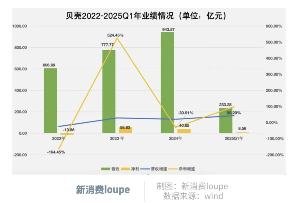 8437亿元总交易额、42.4%净收入增幅、97.9%净利润暴涨——贝壳2025年一季度财报的数字跳动,像极了一场华丽的增长狂欢。